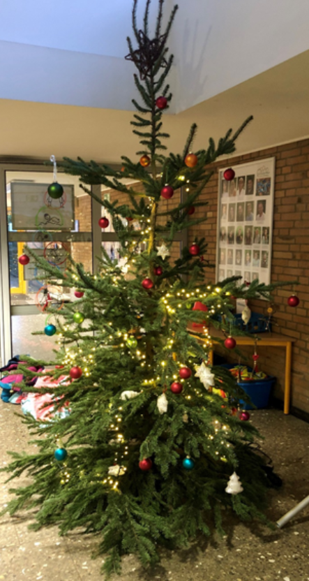 diese regelmäßig in der Eingangshalle. Dort singen die Klassen 1 und 2 sowie die Klassen 3 und 4 – jeweils wöchentlich abwechselnd – gemeinsam verschiedene Weihnachtslieder. Einzelne Klassen können zudem kleinere Aufführungen vorbereiten und präsentieren. Die Eingangshalle wird weihnachtlich dekoriert und der aufgestellte, geschmückte Tannenbaum sorgt für eine festliche Atmosphäre.
