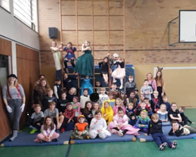 Zudem wird nicht nur in den Klassen Karneval gefeiert. Auch in der Turnhalle warten spannende Angebote. Dort werden verschiedene Geräte für die Kinder aufgebaut, die sie zusammen mit der Patenklasse nutzen können. Natürlich darf hierbei die passende Musik nicht fehlen.